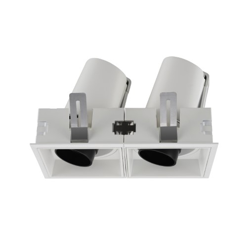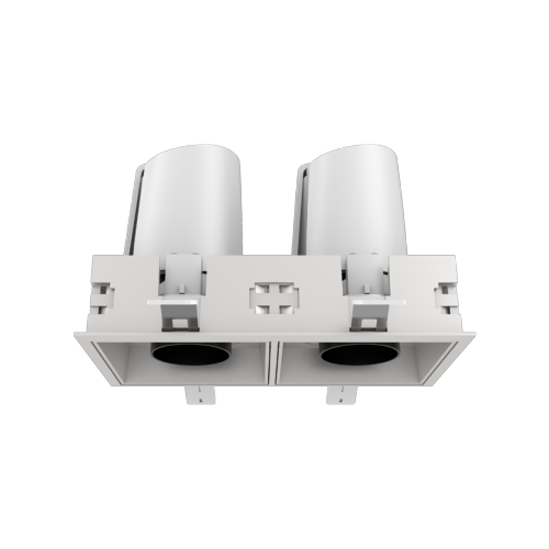 獨特的遮光筒式燈頭,以更好地控製眩光,安裝後在天花板上呈現簡練的方形外觀;可選擇單頭或雙頭款式。